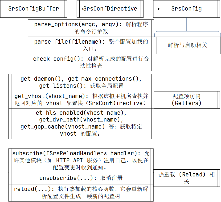 SrsConfig对于海量的get_XX,封装了其复杂的树查找过程。最后仅需调用_srs_config->get_hls_fragment(vhost_name)形式即可得到配置